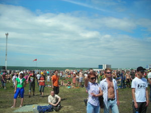 Впрочем, помереть на территории фестиваля с голоду никому бы не удалось. О гостях организаторы позаботились и обустроили на поле весьма внушительное количество кафе и палаток с довольно недорогой едой. Гораздо печальней дело обстояло с легким алкоголем – только один вид пива и по цене в 100 руб. за 0.5 напитка. Сей факт многих удручал, зато к палаткам с пивом совсем не было очередей, а число невменяемых граждан на поле не поражало воображение, как это обычно бывает на столь масштабных мероприятиях.